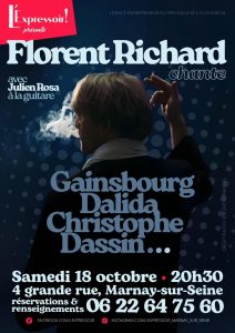 Ce samedi, laissez-vous emporter par la voix de Florent Richard qui revisite avec élégance les plus belles chansons de Gainsbourg, Dalida, Christophe, Joe Dassin et d’autres encore…